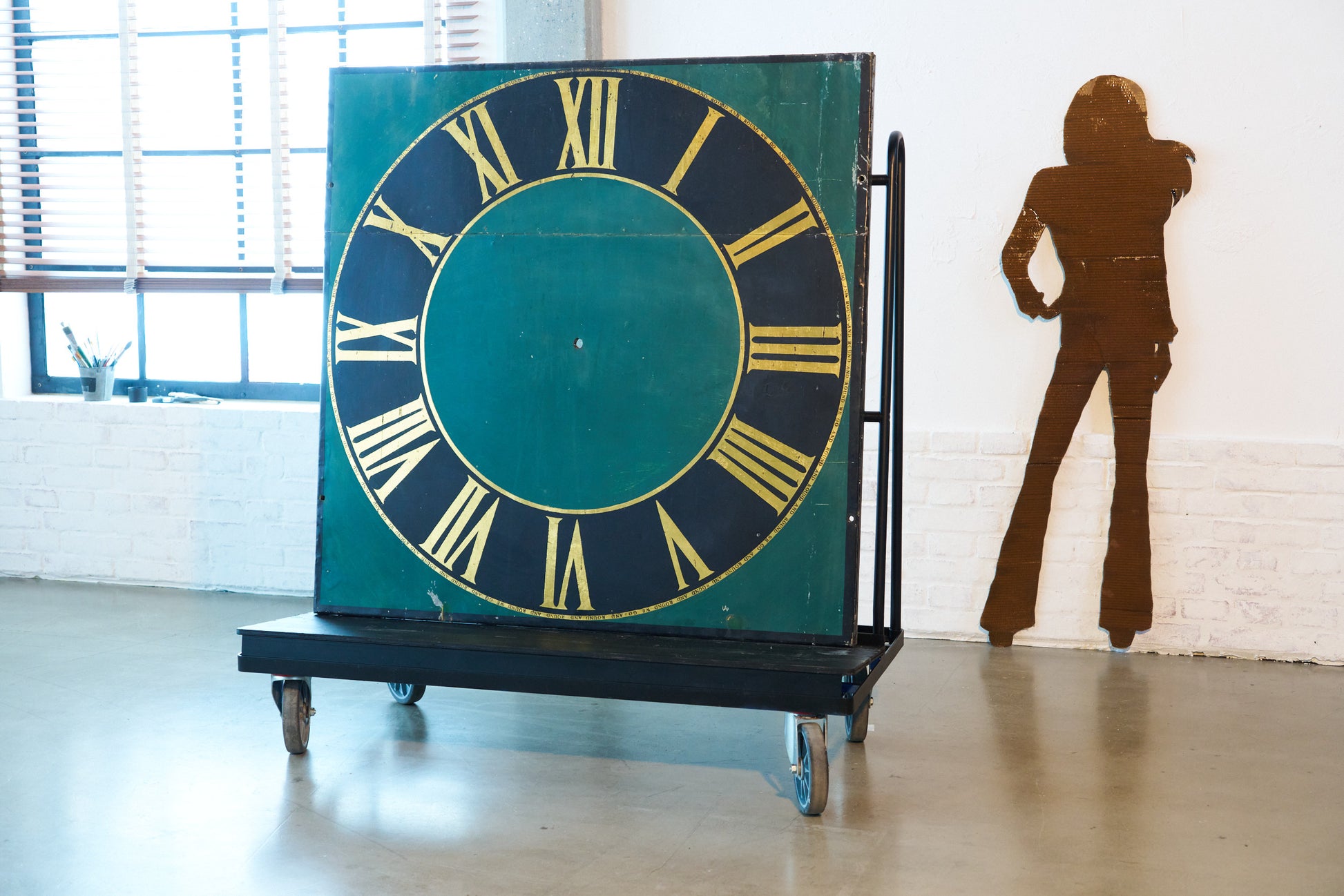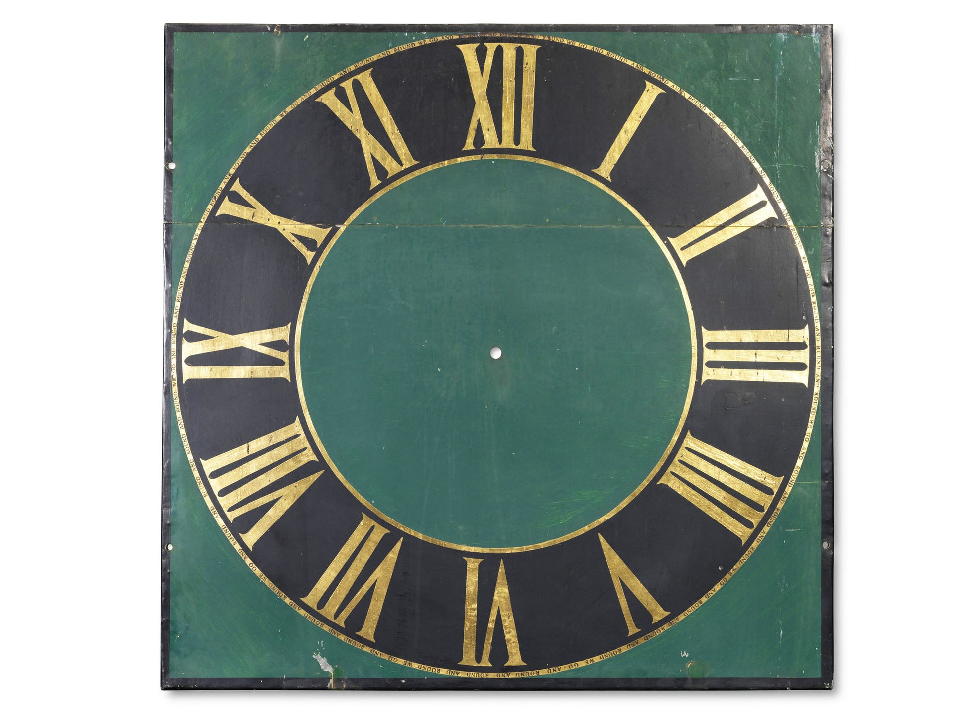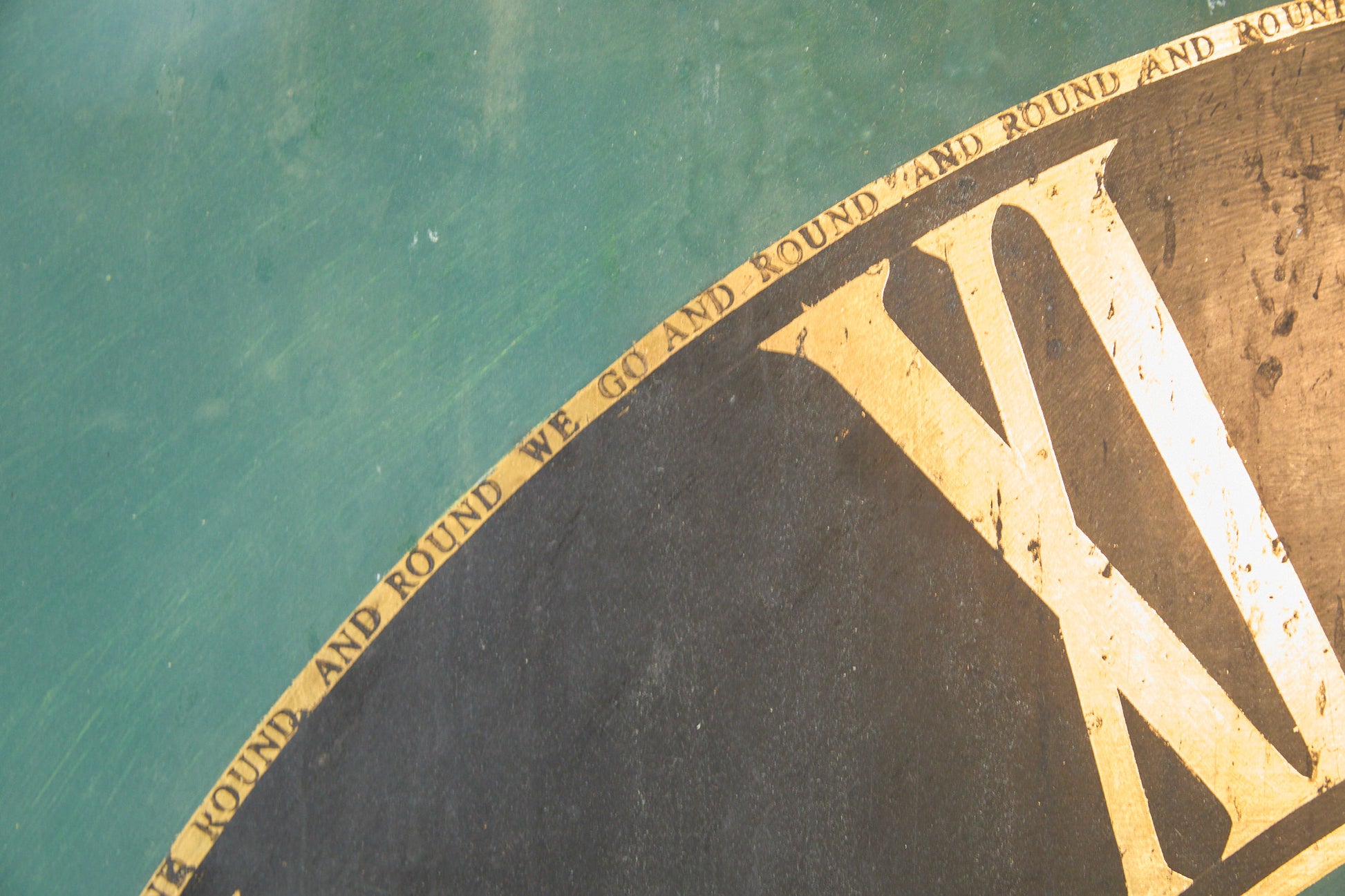 old church tower clock face, acrylic paint on metal and wood